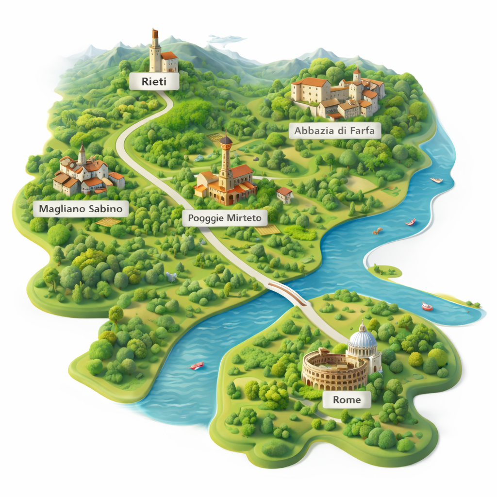 La Sabina è una di quelle terre che sembrano uscite da un racconto antico. Colline morbide coperte di uliveti, borghi in pietra che dominano le vallate, campanili che segnano il ritmo lento dei paesi. Qui il tempo non corre: cammina.